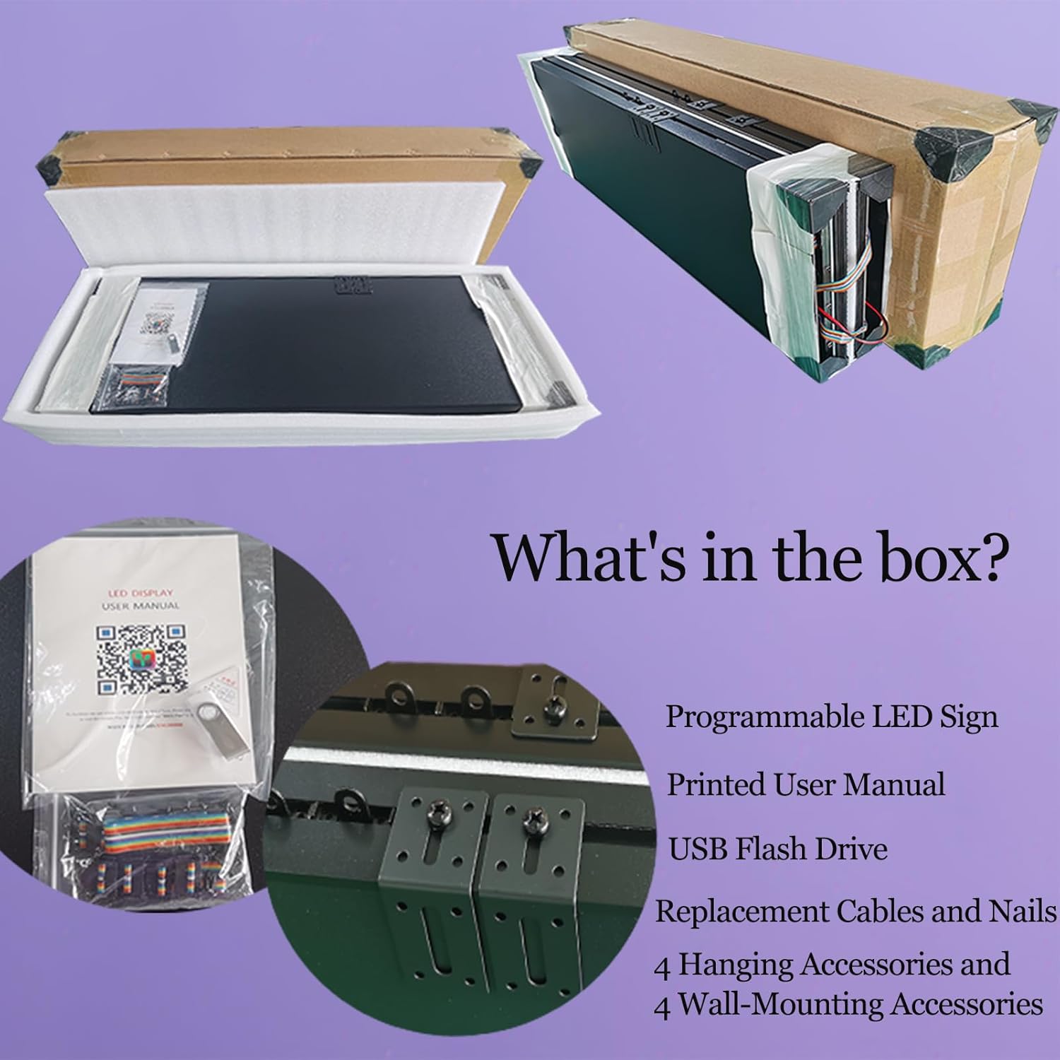 - Easy to Assemble: The product consists of 2 parts that simply screw together for quick setup, with an instructional video available for guidance. Our full color LED sign is FCC certified and UL tested, ensuring safety and reliability, giving you peace of mind